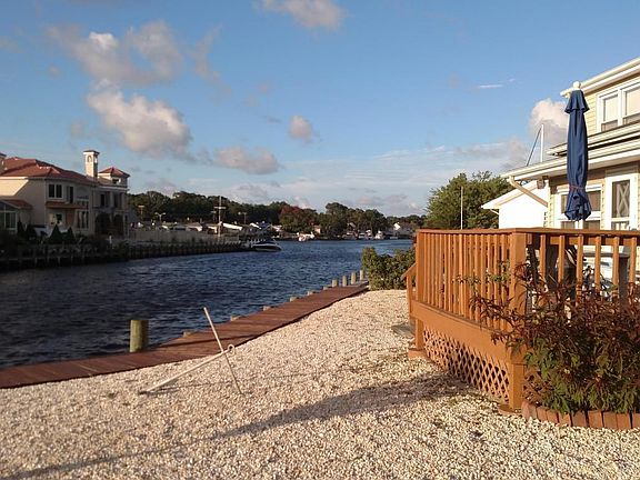 Enjoy a wonderful waterfront location from this 4 bedroom (2 BR upstairs & 2 BR downstairs) 2 bath Custom Cape. It is situated on a oversized lot w/90 ft of newer vinyl bulkhead providing dockage for 3-4 boats and great view down the lagoon and river. Living room with gas fireplace, an enclosed nice porch with all windows and heat. Has great water views. Nice size eat in kitchen that can be updated. Yard is large enough to build an in-ground pool. Home has great curb appeal. Newer simulated cedar shake vinyl siding + roof, C/A and Gas Heat, nicely landscaped & maintenance free...Untouched by SANDY.. Come and check it out.