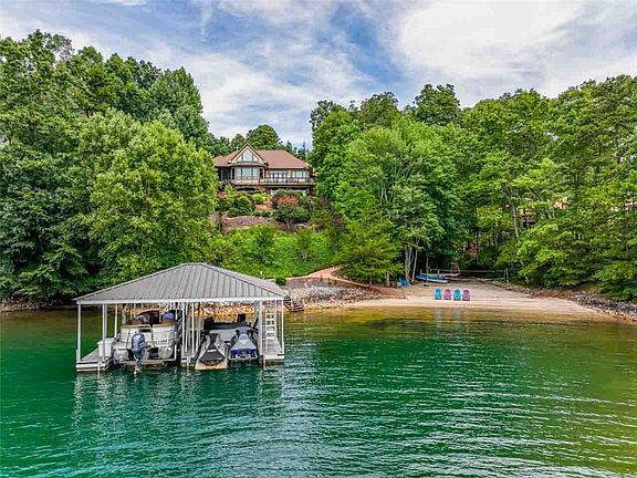 Welcome home to 303 Oakleaf Court on Lake Keowee. This peaceful setting can easily be deemed one of Lake Keowee's finest locations by both land and water. A custom designed home, built by Central Contracting, lovingly maintained and in move-ready condition. Two levels of comfortable living space with lake views from almost every room. This tranquil spot offers a long southern exposure with a spacious sand beach and deep water dock. Upon entry, the lake views pan 180-degrees across the open kitchen, dining and living room design. Large picture windows extend the entire lakeside with a low maintenance deck and clear balusters providing an unobstructed view for you and your guests. A soaring stone gas fireplace anchors the living and seating area with a cathedral ceiling and hardwood floors throughout. The primary suite is tucked at the end of the main level with a private screened porch and atrium sliding doors for a fresh southern breeze throughout the night. Two quintessential parts of an idyllic primary suite are a spacious closet and bath. This designer walk-in closet offers 160-plus square feet of organized storage space. The bath is a tranquil spa retreat of absolute proportion. Measuring almost 17’x15’, the bath offers a doorless shower design with multiple heads and a transom window for natural light. A free standing soaking tub, large shellstone vanities and glass front linen storage complete the room. Main level features also include a home office, butlers pantry and spacious laundry room complete with a utility sink, ironing station and loads of built-in storage shelving. On the terrace level, the outdoors beckons. A lakeside entertaining area that sets a precedence. Stone seating walls, a countertop bar, firepit, grill, smoker, fridge and more. Partially covered from the elements, the patio offers part sun, part shade and 100-percent relaxation. The terrace recreation room features a second bar area and dishwasher for ease in clean up. Also on this level are three ensuites, each offering a tile shower or tub-shower, with large lake views. An exercise room and climate-controlled mechanical room finish out the interior. A second laundry hook-up and an adjacent exterior double door leans this transitional area towards a great workshop or hobby room. Unique features include a 3-car oversized garage with fourth bay door on the rear; great for watercraft or trailer storage. Permanent stairs for floored attic storage or future living above the garage. A concrete cart path offers ease of access to the shore with stone steps and professionally landscaped terraces. Natural sand beach is great for play and pets. The deep water dock, originally a double 24’ length boat slip, has a converted second slip to a covered personal watercraft dock and shaded waterfront seating area. Plenty of bells and whistles in this professionally designed treasure within five minutes to grocers, restaurants, shopping and entertainment; located less than ten minutes to Clemson University. Community offers sidewalks, streetlights and common area pool, playground, cabana, tennis/pickleball court.