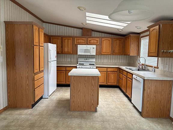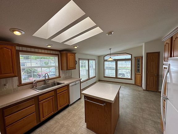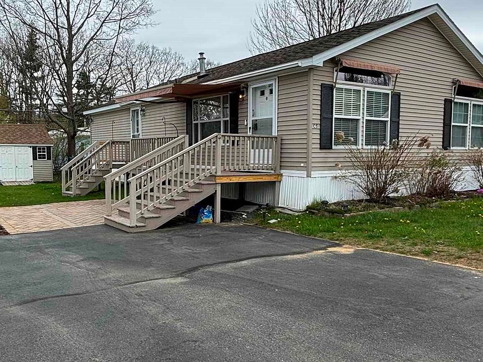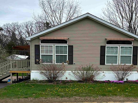 Attention Lake Lovers! Here's a chance to live minutes to Lake Winnipesaukee and just a short drive to Lake Winnisquam! This open-concept, double wide mobile home has 2-3 bedrooms with 2 full baths and lots of natural lighting. This property boasts a spacious eat-in kitchen illuminated by skylights and enhanced with a 2023 Bosch dishwasher, a newer fridge, a gas stove and a microwave that vents outside. The kitchen island and cathedral ceilings extend into the living room, creating an open, airy feel. Comfort meets convenience with ceiling fans in the living room and each bedroom, central air conditioner and a 2019 water heater ensuring year-round comfort. The primary bedroom features a spacious closet and a bathroom with walk-in shower, plenty of counter space and a skylight, adding a touch of luxury. Practical amenities include a top-load washer and dryer in the separate laundry room and a Generac generator for peace of mind. Outside, a useful shed provides additional storage, large deck and patio for summer night entertainment. During the day the awnings provide additional shade. Seller has Luxury Vinyl flooring in the shed for new owner to replace flooring in the living room, kitchen, and primary after closing. Located just moments from the town beach, boating, hiking, skiing, shopping or attending concerts at Bank of NH Pavilion!