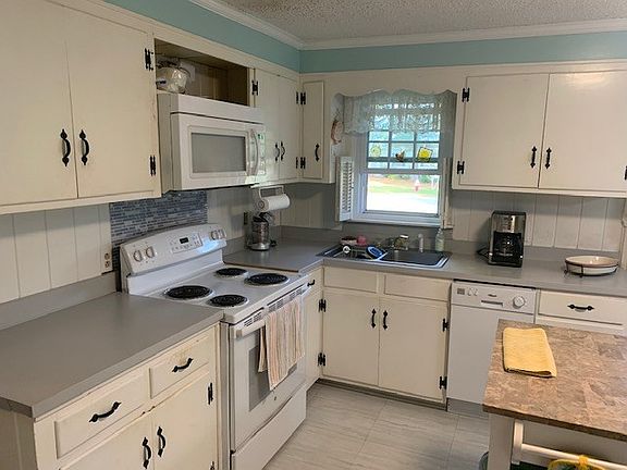 This pretty home in Sylvester has been lovingly cared for and is move-in ready. Freshly painted exterior and updated interior all situated on almost one acre in a quiet, but convenient location. The windows are 7 years old, A/C is 5 years old, and appliances are less than 3 years old. The eat-in kitchen has good cabinet and counter space. The den is spacious. Both bedrooms have good closet space. There is an additional room that could be a nursery, office, or huge walk-in closet for extra storage. There is also a mudroom with laundry hookups that provides additional storage or living space. Outside, you will find a large carport, screened porch, and a shop and shed. The owners have planted fruit trees and beautiful flowering shrubs and trees that make this yard a showplace!