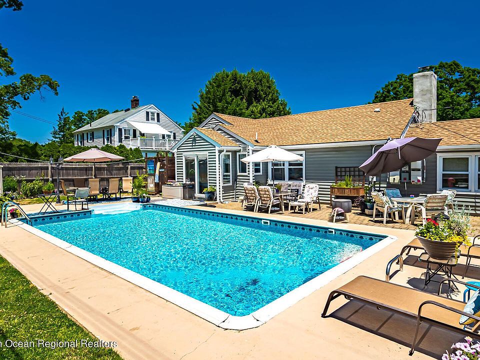 A gem like this rarely comes to the market. This 1950's custom ranch in the highly sought after Gables neighborhood, only a 5 minute drive to Asbury Park's hip downtown and beachfront. Live, work and play in this 3 or 4 bedroom, 3 bath resort like home with a mother/daughter feature. Impressive double wide paver driveway and stairs lead to the relaxing open porch where you can watch the sun rise & enjoy your professionally landscaped front yard. Enter into the large living room with a wood burning fireplace. Sun drenched rooms accentuate the gorgeous newly finished hardwood floors throughout. Is it a remote work day? If so, step into the large office with sliding driftwood barn door for privacy. (Click ''More'' to continue) Step into the kitchen w/ granite counters, SS appliances and sliders to the outdoor entertaining oasis complete with a heated, salt-water in-ground pool, paver patio and outdoor shower. Also off the kitchen is the entrance full finished basement complete with a bar and billiard room with room for overnight guests. Technical upgrades are a tankless water heater, updated electric and heater. A brand new Timberline roof with solar panels will help offset those electric bills and a heated oversized garage is also a nice extra bonus. Opportunities like this do not present themselves very often. Come take a look and fall in love!!