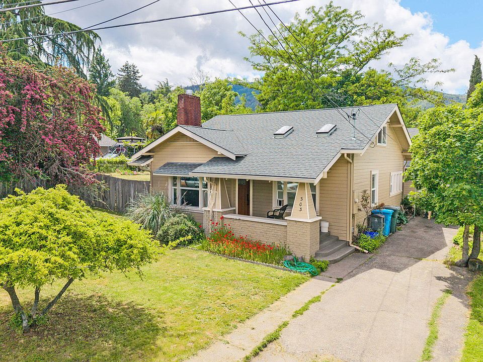 Built in 1929, this timeless Ashland cottage blends historic character with modern comfort. Sitting on a rare, level R-3 lot near downtown, you're greeted by original barrel-vaulted ceilings, hardwood floors, and a brick-accented gas fireplace that create a warm, inviting interior. The updated kitchen offers a gas range, tile backsplash, and a picture-perfect garden view. Two main-level bedrooms and a refreshed full bath flow into a spacious dining area, and the upstairs loft provides room for guests, work, or play. Outside, new fencing, fresh landscaping, and a rebuilt deck set the stage for outdoor living. The large front and back yards feel private yet open, with plenty of space to relax or expand. Perfectly situated between Ashland High and SOU, this home offers convenience and charm in one of Ashland's most desirable areas. With a sizable price adjustment since its initial listing, this is an excellent opportunity to secure a home in town with both character and potential.