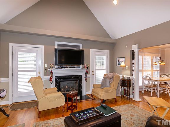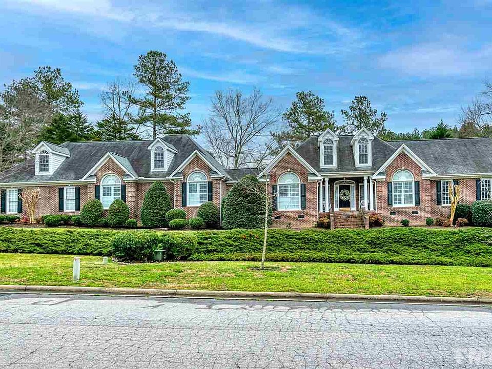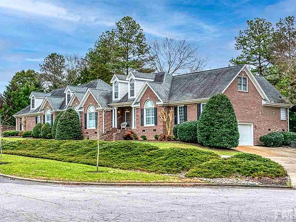 Enjoy easy living in this compelling home situated on a cul de sac in desired golf community! Home features ranch living w/ 2 master BR's, Closet w/ WOW factor, elegant kitchen w/ granite/stainless app, finished basement perfect for entertaining, gleaming hardwoods throughout main living, bonus room or 4th BR, & 4 car garage. Set on 2 lots w/ view of golf course, lush landscaping & 2 expansive decks for relaxing. Minutes to commuting arteries to Durham or Raleigh! An affordable piece of heaven awaits you!