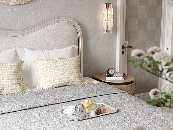 Designed by internationally acclaimed designer Jean-Louis Deniot, residences combine modern comfort with signature features such as a dedicated Concierge Closet and keyless entry with opulent details like ceiling coves, herringbone floors, oversized custom-paneled doors, spacious walk-in closets, and grand entry foyers with marble floors and brass inlays.