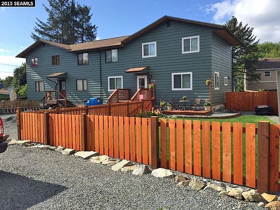 Completely remodeled from floor to ceiling! Renovated throughout, this soundproofed zero lot line home has been entirely revamped. Enjoy a private fenced front & back yard, a back deck & front patio, and two new 10' x 12' sheds for storage & workshop space. The kitchen has stainless appliances, new cabinets & counter tops, and above cabinet lighting for a warm glow. Relax in the living area or spacious master suite. Conveniently located near downtown, Baranof Elementary, Totem Park & local market.