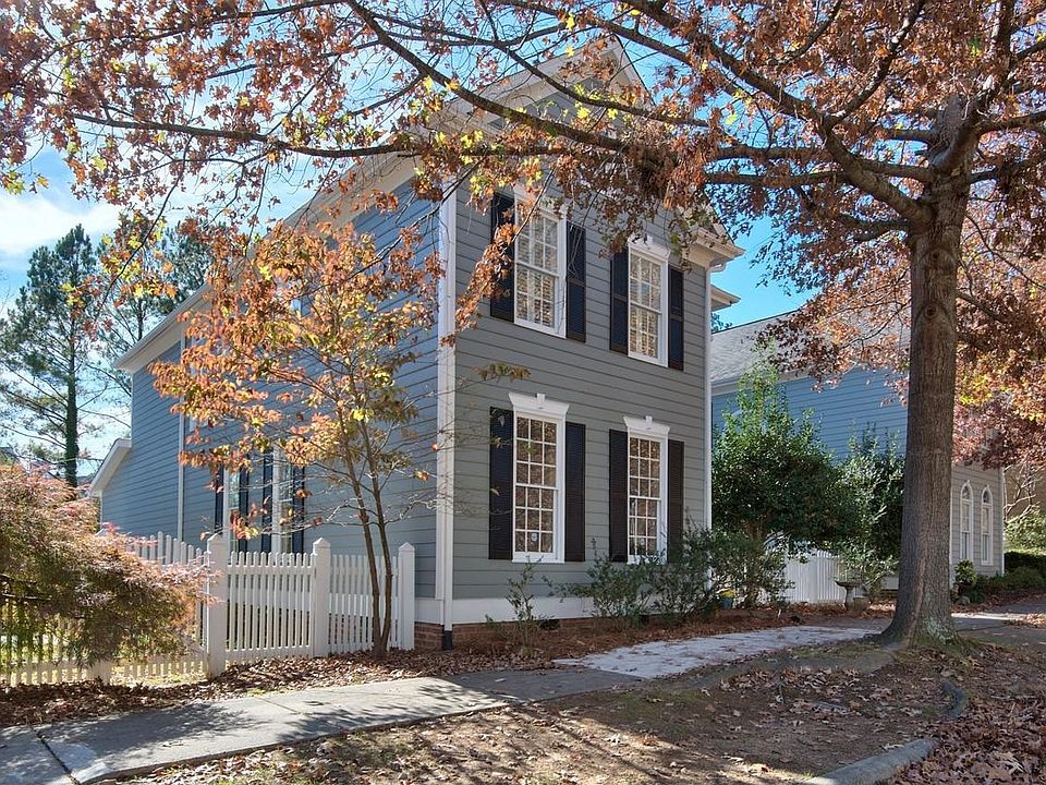 Charming, character-full Charleston home in the established Arlen Park section of Southern Village. As part of one of only two mixed-use communities in Chapel Hill, it is a short stroll to everything - grocery store, cinema, elementary school, local shops and restaurants, medical offices all in the Village Square. Lovely open layout and plenty of light with high ceilings downstairs and cathedral ceiling in primary bedroom. Glowing hardwoods throughout. Brick patio and zen garden space in addition to two porches. New roof, new range, microwave and dishwasher in 2023. Beautiful inside and out!