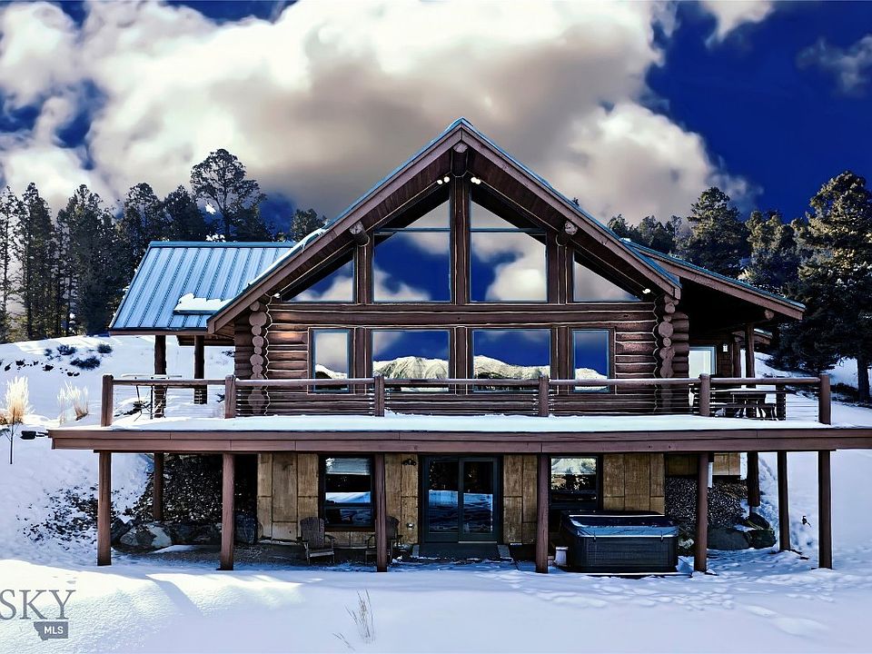 View of Kings. This custom luxury log sanctuary was built for commanding views of the Bridger Mountain range, while being positioned within the forest for a clandestine retreat away from prying eyes. The 3941 sq. ft. fortress of solitude has the capability to house people on all three levels. The walk out basement, the great room on the main level, and the grand balcony on the second floor all have imposing views of this impressive landscape. The opulence of the awe-inspiring kitchen is notable. With a Wolf gas range, Subzero French door refrigerator and freezer, Subzero wine storage, and Subzero freezer drawers in the magnificent walk-in pantry. For those of you that are more pragmatic the property has two very large heated double car garages to store vehicles and gear. Located within the detached garage is a 27,000-watt Generac generator which can power the entire compound. 1,500 gallons of propane can keep things running for an extended period of time. Attached to this garage is a dog kennel for the security of your homestead as well as an invisible dog fence throughout the property. Lastly, you’re surrounded by a multitude of wildlife on this 10.2 acre parcel, which includes moose, deer, bear, and various fowl. Come and take a look at the best views the Bridger Mountain range has to offer.