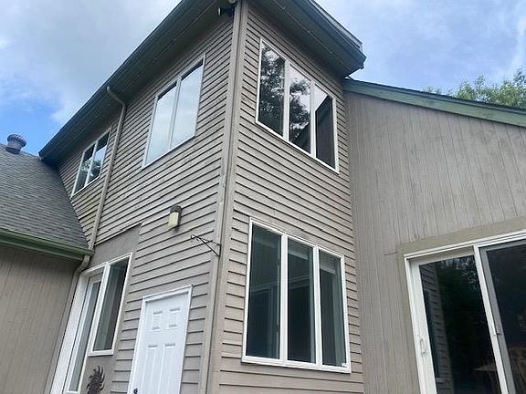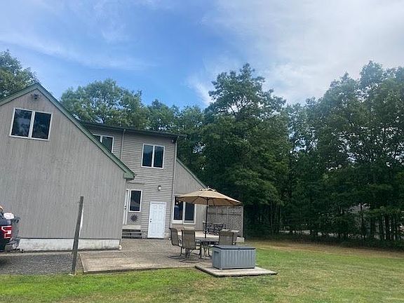 A True one of a kind. 5 Bedroom, 3 full bath Contemporary style home with approx. 3000 sq.ft. of living space. High ceiling finished basement offering both inside and outside entrance. Upon entering this home, you will immediately appreciate all the natural light, cathedral ceilings and eco-friendly wood stove the main bedroom is first floor convenience with natural hardwood and full bath. Full 2 car attached garage, 2 storage sheds, an above ground pool, playhouse, fire pit, 875 deep lot with private walking paths backing up to the Green of the Hidden Creek course. Most recent upgrades, Roof, Lower lever furnace, water heater. Make this home your private paradise and enjoy the setting and convenient location. Yes, you can have it all!