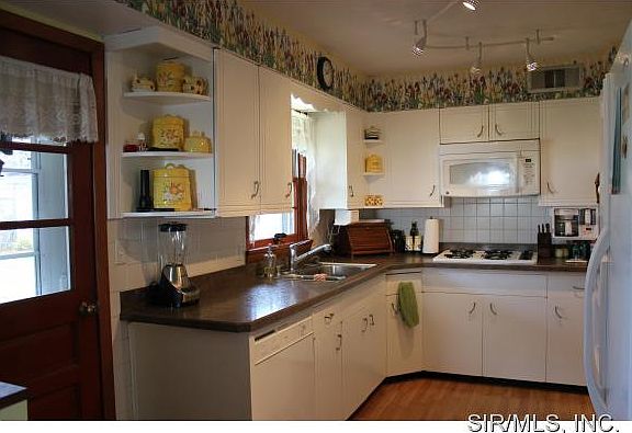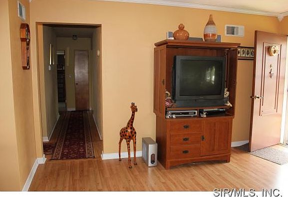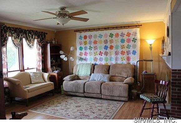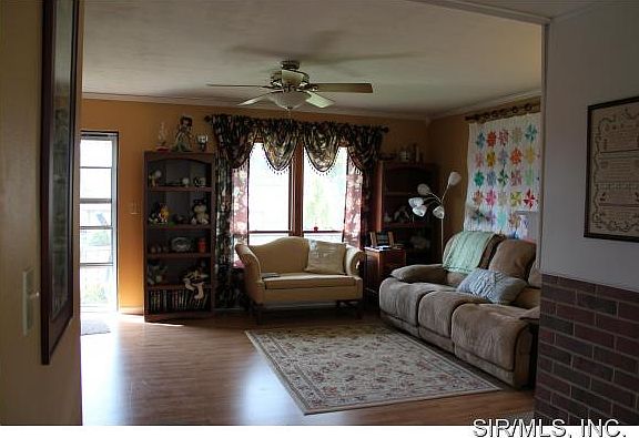 For move information contact Bryan Vogt at 618-210-2451 or email bryan@bryanvogt.com.You will love the open feel of this home. A roomy living room with crown molding opens to a large dining area off the kitchen. A two sided fireplace can make the living room or dining room cozy. Kitchen has built in microwave, oven, gas cook top & pantry. The master bedroom is big enough for a king sized bed with plenty of room left over. The basement has a huge space with egress windows that can become a roomy family room or perhaps a bedroom or two. There is a shower, toilet, and sink in the basement that can easily be converted to a bathroom with installation of walls. A built in workbench is available for the tool or craft person and plenty of additional storage. The kitchen leads to a covered brick patio and a deck with a small pond. For parking there is a one car garage and two carports. A staircase leads to the attic an there is an attic fan.This home has alley access. Riding mower included.