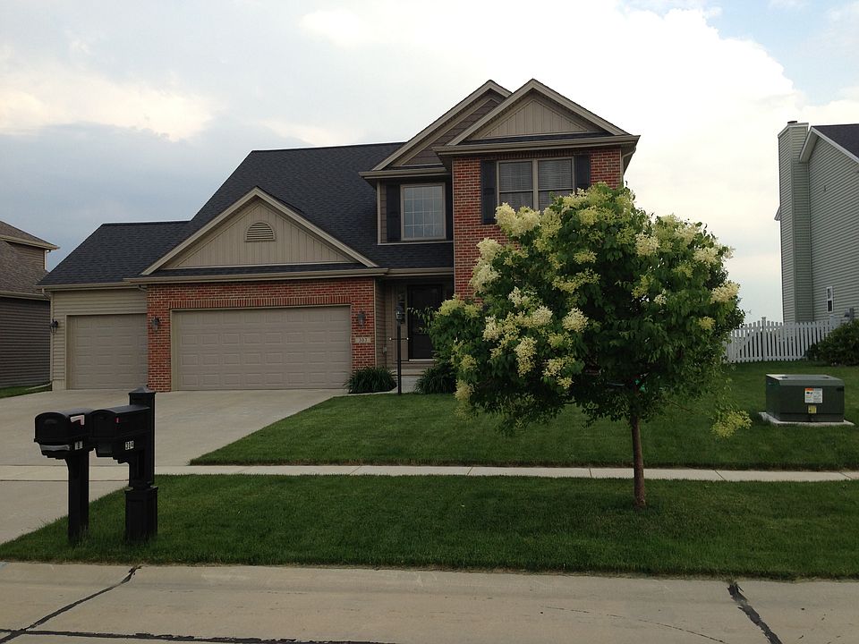 Wow! Come in and enjoy this immaculate two story custom home in Prairie Meadows. High ceilings with an open floor plan built for entertaining. Spacious kitchen includes tile flooring, granite counter tops, custom tile back splash and SS Appliances. Over-sized dining room with Cherry HW floors. First Floor designated office area. Upstairs includes four (4) spacious bedrooms including large master bedroom with walk in closet. The finished basement has a custom built wet bar and kitchen, work out area, and living space for your enjoyment. Exterior includes custom stamped patio, mature landscaping, and brick-lined landscape beds. An great find for an amazing home that is priced to sell.
