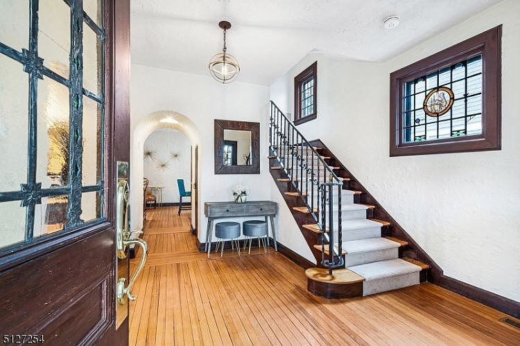 Unique three-story Victorian full of character and charm. Steps to the heart of Downtown Westfield and one block to Trader Joe's! 5 Bedroom (possibly 6) with 4 full and 1 half bath. Stained Glass Windows throughout the home. The welcoming front porch leads you to the entrance foyer and first floor that has 9' ceilings, Large Living Room open to Sitting room with Wood Burning Fireplace and Archway into the Formal Dining Room. The Kitchen features Glass Cabinets, Granite counters, Viking Double Wall Ovens, Bosch DW and Cooktop, desk office area, Mudroom, newly renovated 1 2 bath and stairs to the 2nd floor. The second floor has 4 Bedrooms and 2 Full Bathrooms. Primary Bedroom has custom walk-in closet, Bathroom with Stall Shower and radiant heat flooring. Hall Bath has bathtub with shower. 3rd floor includes bedroom, large sitting room that can be converted into a bedroom, office area, tons of closets and a full bathroom with stall shower. The basement is finished with a Recreation room, Full Bath, Gym Area, and Laundry. The exterior of the home has a fenced in yard with back door entry, paver walkways and 2 Car Detached Garage. Perfect Location Close to Top Rated Schools, Shopping, Restaurants, Transportation, NJ TRANSIT TRAIN, Bus to NYC. Proposed renovation plans available, 1 Year Home Warranty Included. Sellers will be refinishing the hardwood floors when they vacate the property.
