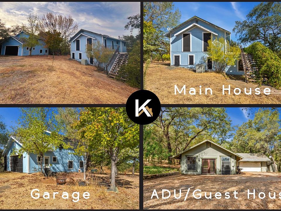 Tucked away on a private 5.1-acre lot, this Newcastle property offers 2 homes on 1 lot, owned solar, and the ultimate in privacy and panoramic views. Surrounded by an abundance of mature trees, the property is solar powered and the system is owned outright. The main house features 1,728 sq. ft. (per appraiser) of living space with 3 bedrooms, 2 bathrooms, and a spacious kitchen with elevated ceilings, perfect for cooking and entertaining. The main house offers a spacious detached garage and a large wraparound balcony patio that invites you to relax and soak in the natural beauty that surrounds the home. The property also includes a 1,127 sq. ft. (per appraiser) ADU/Guest House with 1 bedroom, 1 bathroom, and a spacious room overlooking the property. The ADU also has its own attached and oversized 2-car garage adding extra storage and considerable functionality to the second unit. With some updates and renovations, this estate could become the perfect multigenerational living space. Unpermitted improvements have been made to the property. Check the attached appraiser's floor plan sketch for details and dimensions. Don't miss out on the chance to turn this versatile property into your dream home!