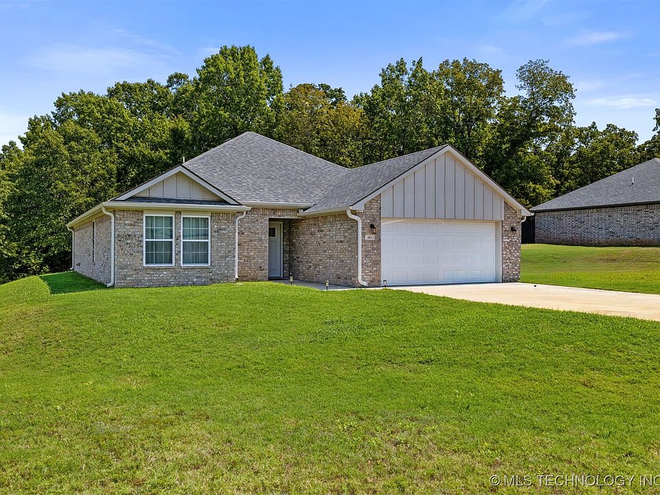 Welcome home to this beautifully built 2022 Craftsman-style home in the Portman Subdivision, located within the sought-after Silo School District. This 3-bedroom, 2-bathroom residence offers 1,643 square feet (courthouse) of single-level living space on a 0.64-acre lot with mature trees. The home has a bright and open layout, highlighted by an upgraded luxury vinyl flooring, granite countertops, and stainless steel appliances. Enjoy cooking in the modern kitchen with a center island and relax in the large living area ideal for gatherings. The primary suite includes a private bath and great closet space. Additional amenities include a covered front porch, energy-efficient vinyl windows, ceiling fans, and a 2-car attached garage. Quietly nestled on a peaceful cul-de-sac, this home blends modern comfort with peaceful surroundings—perfect for you.