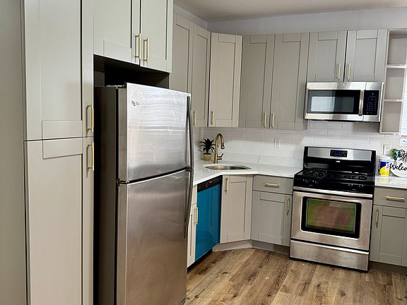 Welcome home! This is a 3 bedroom 1 bath unit with an additional sunroom that you can make an office or small den. New kitchen, new appliances, new hardwood flooring. Central heating with wall AC. There is a laundromat across the street. Tenant pays utilities. Parking is available for additional $150 a month. Welcome to this beautiful 3 bedroom, 1 Bath plus den unit. Newly renovated with brand new kitchen, dishwasher, new appliances and hardwood floors. Parkings is also available at additional cost. Tenant pays Utilities and heating. Central heating in the units. We do accept section 8.