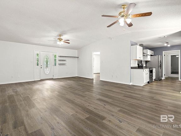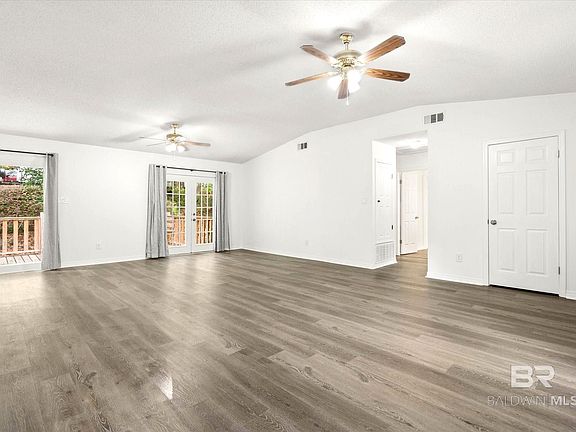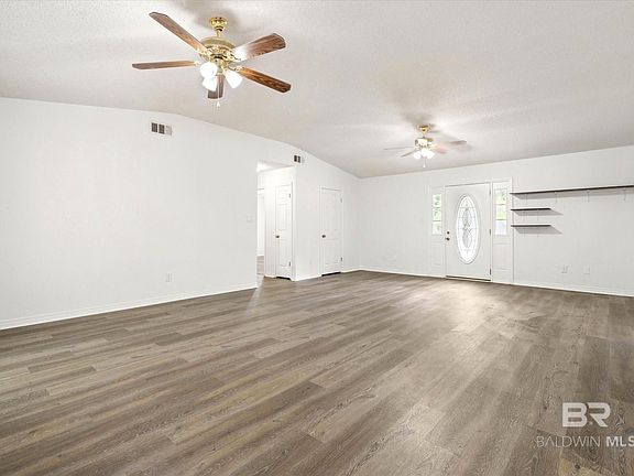 This remodeled 3-bedroom, 2-bath brick home is centrally located and move-in ready. Recent updates include luxury vinyl plank flooring throughout, vinyl windows, fresh paint, a newly poured driveway, 2-inch faux wood blinds, a new stainless steel range and vent hood, a new back deck, and an epoxy-coated garage floor. The open-concept layout features a spacious living, dining, andkitchen area. A split floor plan provides privacy, with the primary suite, including a walk-in closet, separated from the additional bedrooms and second bath. A new metal roof was installed in 2020, HVAC 2013. The home also comes with a transferable termite bond (through October 2025) with Baldwin Gulf Pest Control. Home will be sold as-is. The seller has never occupied the home, and no repairs are currently known. Seller recently had $17k in crawlspace work completed. Including but not limited to: a full encapsulation, French drain system with sump pump and an industrial dehumidifier installed. This work includes an annual maintenance package to ensure all items are working correctly. See documents for full scope of work. This property offers excellent rental potential and is priced competitively for the Eastern Shore.Lake Forest community offers many amenities, including an 18-hole golf course, disc golf course, walking trails, tennis courts, yacht club, city park, horse stables, playground area and 3 swimming pools. Buyer to verify all information during due diligence.