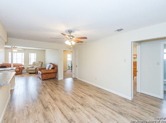 This 1 story, 3 bedrooms & 2 bathrooms sits on a corner lot in a quiet neighborhood w/ NO HOA. A mature, gorgeous tree covers the front yard which keeps the grass healthy & green. Open & airy floor plan throughout. Cute kitchen w/ an island that could also be used as a breakfast bar or serving area. There is additional square footage/area that could be used as either, extra living area or an extra dining room. You'll want to see this one before it's GONE!!