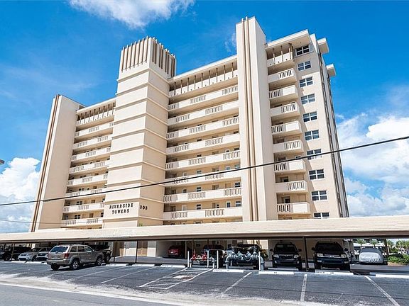 Who needs a television when you can enjoy amazing wide water views and beautiful sunsets from this 2 bedroom, 2 bathroom condo home? This Riverside Tower home has a screened balcony for comfortable outdoor living, tile flooring, newer HVAC, newer water heater and impact resistant windows. Rest assured, the building passed its 40 and 50 year inspections. The beach, pier, restaurants and more and within walking distance, making this the perfect home in which to live your luxury lifestyle!