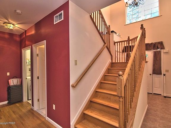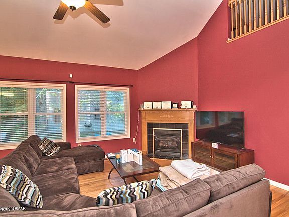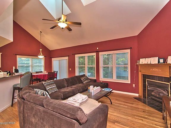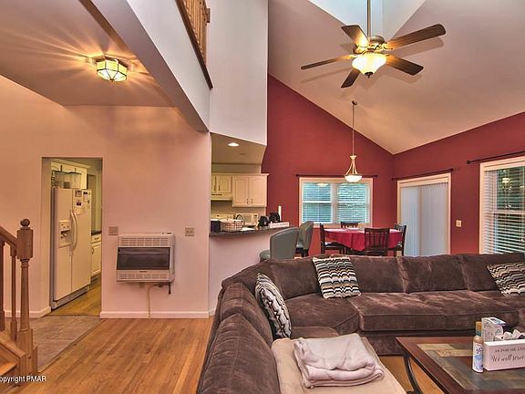 Captivating Contemporary in amenity filled Pocono Farms. This home features 3 bedrooms and 3 baths complete with FIRST FLOOR MASTER suite. 2 story foyer invites you in. Formal Dining Room has tray ceilings and chandelier. Open concept living. Modern eat in Kitchen boasts granite countertops and breakfast bar. Spacious living room enjoys vaulted ceilings, skylights, and gas fp. Hardwood floors throughout the home. Mstr suite appreciates tray ceilings and large master bath complete with dble sinks, vaulted ceiling, jetted tub, stall shower and wic. Head upstairs to a large landing leading to 2 more bedrooms, bathroom, and a family room with vaulted ceilings and hdwd floor. There is an extra bonus room next to bedroom 3 which can be used as an office/extra bedroom. NEW LOWER TAXES for 2020