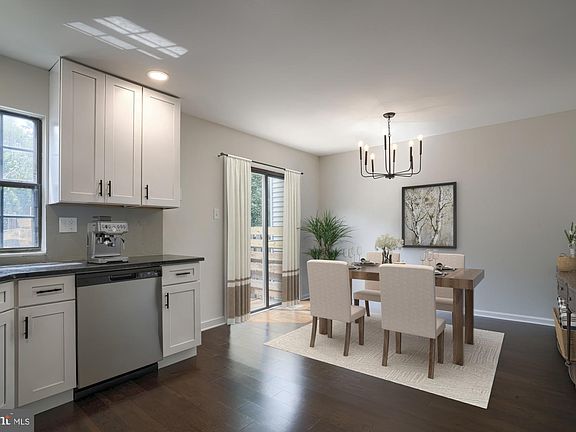 Lovely renewed home with wonderful setting backing to mature trees and landscaping and private rear deck/yard. *Additional finished room in the lower level! This home features a brand new white shaker kitchen with dovetailed/soft close drawers, granite countertops, new stainless steel appliances and concrete backsplash. Recessed lighting, cold central air, warm gas furnace, exposed natural stained wood shelving, eng hardwood flooring, and new tile surround in bath. ABSOLUTE MUST SEE HOME!