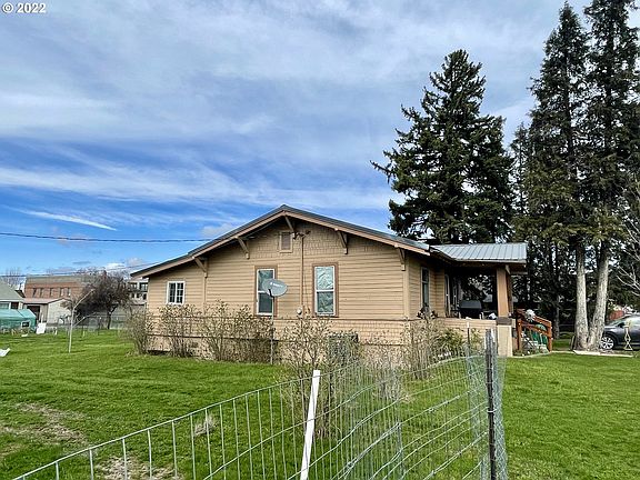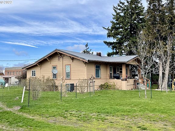 Two bedroom 1920s Bungalow on a triple corner lot in downtown Goldendale. Very large bonus room on the west side of the house and an enclosed side porch/ mud room is a bonus for kids or dogs. Small butlers pantry off of an efficient kitchen. Built-ins in the living room add to charm and a metal roof for function. Fully fenced back yard/garden area on this shy half acre. Property is zoned Central Business District and has many possible additional uses including ADU or a home based business.