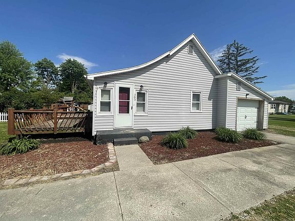 Take a look inside this 3 bedroom, 1 full bath home with attached garage. Home has new carpet, fresh paint, new well pump, new water softener, and tub/shower. Inside the front door you will also find a heated sun room/enclosed front porch, kitchen, dining room, and spacious living room. Outside you will find a nice sized yard with detached garage and sheds. Located in a small town with easy access to State Road 28 for a quick commute to Kokomo, Carmel, Tipton, Frankfort and Lafayette.