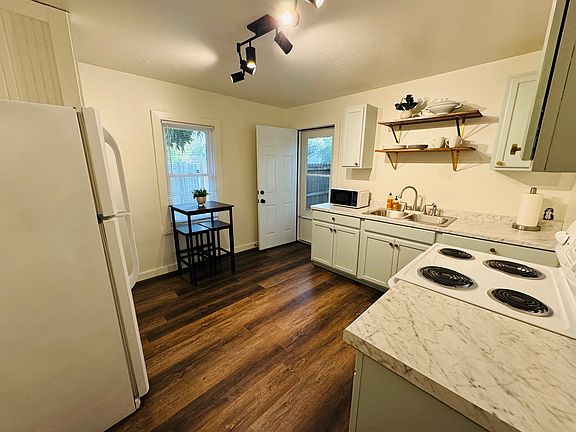 ** Please note home is in Cushing** Completely renovated 1920 home in Cushing Ok. This 2bd 1 ba / studio has Central heat and air, newer appliances with stackable washer and dryer. Kitchen has a space saver table for two, with microwave and electric stove and refrigerator included.There is a master bedroom downstairs and upstairs has second bedroom and another room for a studio, office space or possibly a third bedroom option. New concrete driveway leading up to carport. New privacy fence with very spacious and shaded backyard. There is a creek on one side of the property for additional privacy as well. Concrete patio with patio furniture included. Take a look and welcome home! ** would prefer a completed application before showing** **Tenant responsible for all utilities and maintaining and upkeep of the yard. No pets and no smoking **
