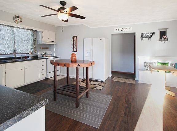 Charming 3-4 Bedroom Home with Main Floor Full Bathroom, Large Eat in Kitchen, Living Room at the Front of the House, Covered Porch and 2 Stall Attached Garage. Clean and Neat!