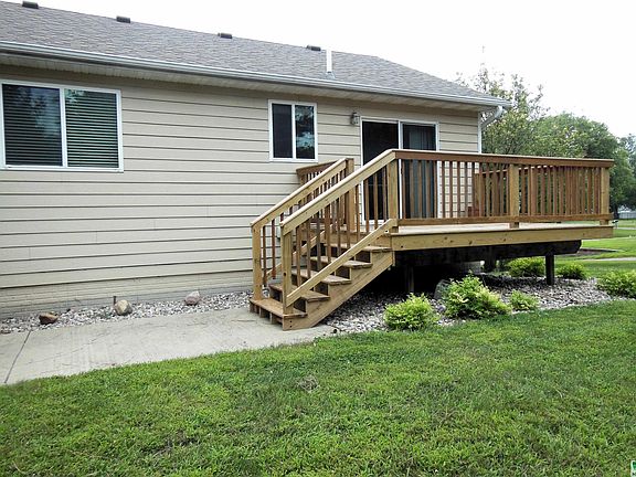Lovely 2 bedroom, 1 full bathroom townhouse in Elk Point, SD!! New complete tear off roof in June 2024. Newer deck April, 2023. Professional paint job throughout the house ,2020. New water softener, 2020. Updated the landscaping adding grass to the front area and pulled back the rock adding new black tarp, 2023. Nice vaulted ceilings throughout with added plant shelving for an extra touch! Offers a private backyard, lawn sprinkler system and a huge 2 stall garage with lots of shelving for storage! Located close to the schools and downtown!! Listing agent is related to the seller.