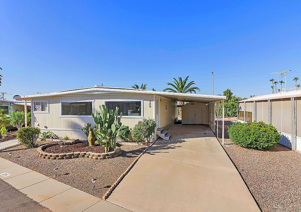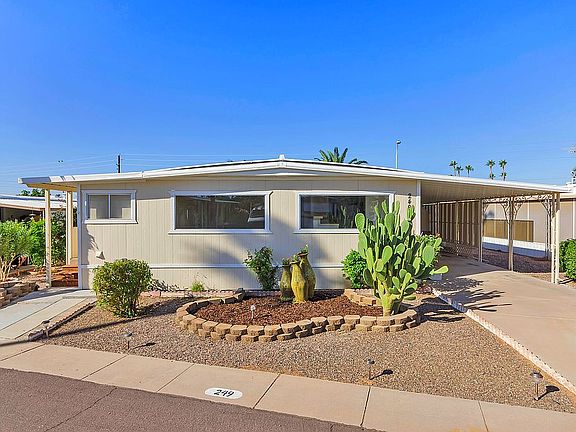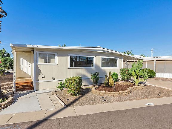 Brand New home on an old frame Located in the highly sought after Fountain east MH park in Mesa, AZ. With wide roads, bigger lots and a great community gathering area this park has it all. Just a couple streets away from the Superstition Springs Circle mall and a 2 minute drive to the US 60 highway. The home is a 1972 Savoy 24x52 with an enclosed 9x52 AZ sun room. This home has been completely renovated. New electric and plumbing. the A/C is three years old along with the duct work cleaned out. Re leveled. Brand new Ikea soft close galley kitchen with new appliances. New paint, Carpet, Flooring throughout. Both bathrooms have been remodeled. Tile floor in shared bath. The AZ room has been completely enclosed, insulated, dry walled and all new electric. Attached to the AZ room is a Laundry room. Off to the back is a custom deck and grill area. it features a Bull outdoor built in grill. There are two storage sheds under the carport. 55+ community. Private lender Financing is available please. Amenities @ Fountain East : ~Island Shaped Pool, with Separate Large Jacuzzi ~Shuffle Board Court ~Daily Activities ~Fountain East Monthly Newsletter ~4 Billiard Tables ~Poker Tables ~Music Events ~Full Laundry Facility ~Mail Room ~Wifi in Clubhouse ~Clubhouse Kitchen, Meeting Common Area, Music Stage & ~More!!!