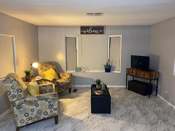 Located in the coveted Fountain East Retirement Community. This cozy mobile has a master bedroom with a private 1/2 bathroom and closets space. It comes furnished with a comfortable queen sized bed, dresser, flat screen TV and nightstands. Guest bedroom is furnished with a Full sized bed, flat screen Tv and closet. Full bathroom with closet space is located between both bedrooms. The home has an open layout with an equipped kitchen, including fridge, oven/stove and microwave. Dinning area that leads to a spacious living room with a comfortable couch and flat screen tv. The home also has covered parking for two cars in the carport. Conveniently located near the US 60, with multiple hospitals and doctors offices within a short drive. Golfing, shopping centers, restaurants, hiking and much more. Community has a heated pool, library, billiards room and plenty of activities during the week like Bocce ball, and shuffle contests to keep you as active as you want to be. Sept - April rent is $2,600 for the home with utilities included.