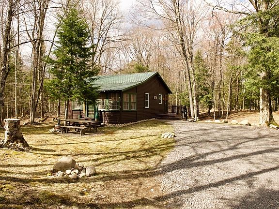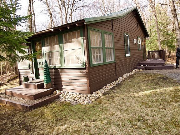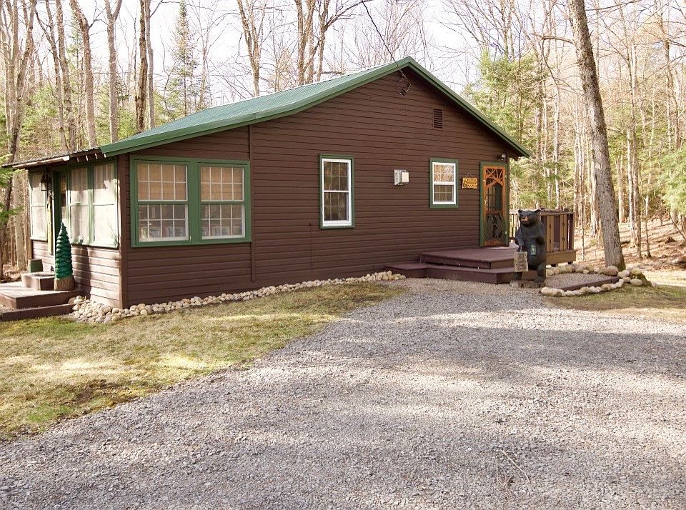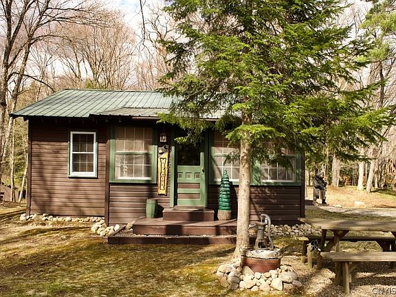 WOODSY, TURN-KEY, & YEAR ROUND – Recently renovated Old Forge cabin with lots of knotty pine and woodsy accents. 2 bedrooms, bathroom, living room, eat in kitchen, and sun porch. Walking distance to lake front, marina, restaurants, and village shops. Most furniture included.