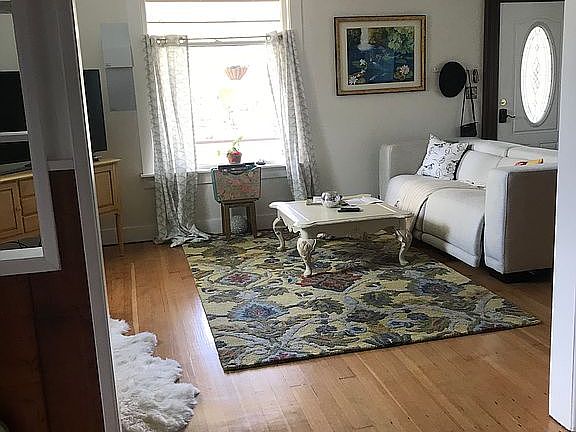 Bungalow with large front porch. attic converted to apartment or playroom in 2021 original hardwood floors refinished, bathroom remodel, full basement. Larger rooms with high ceilings. Fenced back yard, front yard, Corner lot, walk to Amity town bakery, post office, restaurants, winery, bank.