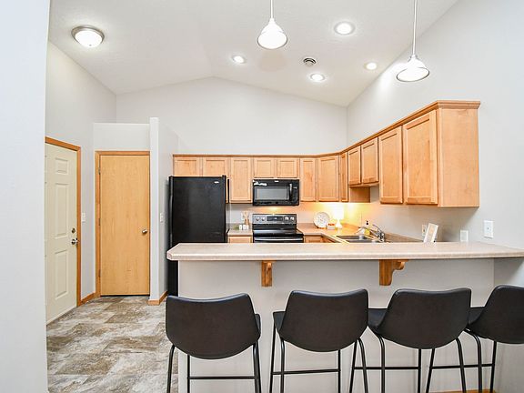 Enjoy easy, one-level living in this efficient slab-on-grade townhome! It features a spacious living room with lots of natural light and a kitchen tucked around the corner for added privacy. The kitchen offers plenty of cabinets, counter space, black appliances, and a breakfast bar. There are two comfortable bedrooms and a full bathroom, including a large primary bedroom with a walk-in closet. You'll also love the oversized 26-foot-deep garageperfect for extra storage or parking.