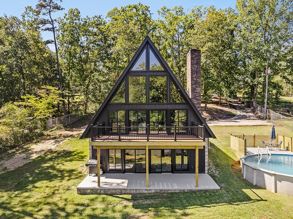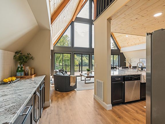 Just 15 minutes from downtown Greenville, this architecturally striking A-frame is a true showstopper with iconic design, a newly renovated interior and unobstructed lake views from all three levels. With 5 bedrooms, 3 bathrooms and 1.23 acres, this lakeside retreat is as functional as it is unforgettable. Inside, soaring ceilings and dramatic glass walls frame the water and flood the home with natural light, creating a living experience that feels equal parts modern escape and timeless statement. The granite kitchen features raw-edge wood shelving, a breakfast bar, and a beverage center with wine refrigerator. The thoughtful layout offers a main-level bedroom, a loft suite upstairs, and three additional bedrooms on the walkout basement level, where a large recreation room captures sweeping lake views. Outdoor living is equally spectacular here with its new Trex decking, a fire pit and above-ground pool making this property ideal for a year-round retreat. A circular driveway, easy direct water access, and no HOA restrictions add priceless features to this property. From its iconic A-frame silhouette to its turn-key renovations and negotiable bedroom furnishings, 303 Snyder Road is more than a home. It’s an architectural retreat and lakefront masterpiece. Schedule your private showing today.