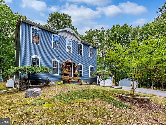 A home for all seasons and all reasons to enjoy Life!! Beautifully sited with 1.2 acres of Woodsy Privacy in the private community of Cove Village, this thoughtfully designed 2 story is a great getaway, snowbird summer retreat or primary residence! Sunshine, serenity, and spaciousness showcases the Pride of Ownership of this Superstar for low maintenance. Tastefully decorated, meticulously maintained & immaculate this lovely home will make your move easy!! The open floor plan offers a united great room, dining room and kitchen so everyone can share the joy of being together. The true beauty of this home is the layering of vintage & modern - moldings, deco ceilings, wainscoting, luxury easy care vinyl plank flooring and so much more. Conversation starting features (like the tea kettle light in the kitchen) are visible throughout this home. The beautiful stone framed fireplace dressed with a mantle & propane logs is the focal point of the great room. The formal dining room is beautified with a deco ceiling, chair rail and wainscoting. Granite countertops and a new tile backsplash add to the kitchen's established character. A center island topped by a pot/pan hanger anchors the 21 handle kitchen accessorized with Stainless Steel Appliances including a Fisher & Paykel dishwasher installed in 2021. The adjoining dining area opens into the fencedyard perfect for children & pets. to romp & play. The zoom room/work from home room ( or den) could be closed off to become a fourth bedroom. The laundry & half bath complete the main level. The second floor encompasses 3 bedrooms with recent & barefoot friendly wall to wall & 2 full baths. The primary bedroom offers a welcome invitation to unwind and an 8x5 walk-in closet, an additional closet and onsuite bath adds to its appeal. The Primary bath whispers relax with a corner shower, corner tub, and double vessel vanity. The lower level offers a family room with a playful twist & is heated by a 2500 BTU Blue Flame Heater. The Storage Room offer plenty of room for the hobby or exercise enthusiast. A superior wall foundation keeps this home dry & comfortable. An ADT fire & burglar alarm enhances peace of mind. The detached two car garage with auto opener eases parking woes. A storage shed (Spring of 2022) offers storage for outdoor tools & toys. Recent upgrades/enhancements by owner: Vinyl siding (2021), Stone work (2021), Rheem 50 gal hot water heater (11/2022), New vanities & toilets in upstairs bathrooms (2020), Driveway paved (2021), Concrete floor in garage (2021) This listing includes parcel #19-13-0304 -0.6 acres AV 2090 taxes $116. Cove Village offers a lake (stocked with fish every spring), a community pool, putting green, playgrounds, lovely lodge that is available to rent for your special occasions, basketball & volleyball courts, baseball field, atv riding & hunting with permit and many community activities. Photots do not do this home justice - it is a must see!! An easy commute to Pocono attractions. Commuter friendly about: 7 miles to Interstate 81, 138 miles from New York, 108 miles from Philadelphia, 74 miles from Harrisburg and 60 miles from Allentown. Escape to leisure living of wooded lots in a private community! Leave the hustle & bustle in the rearview mirror & head to a spot where mother nature reigns!!
