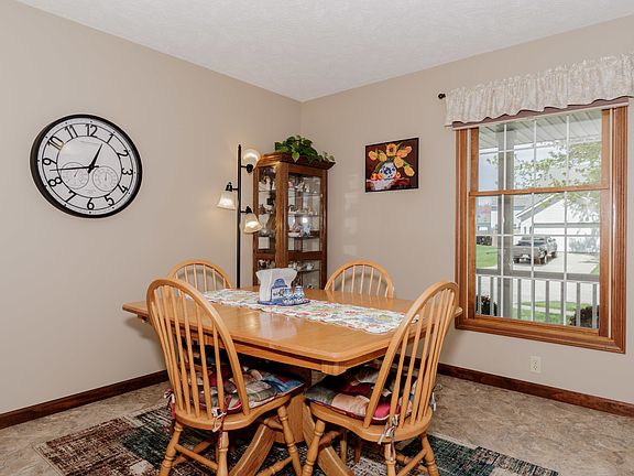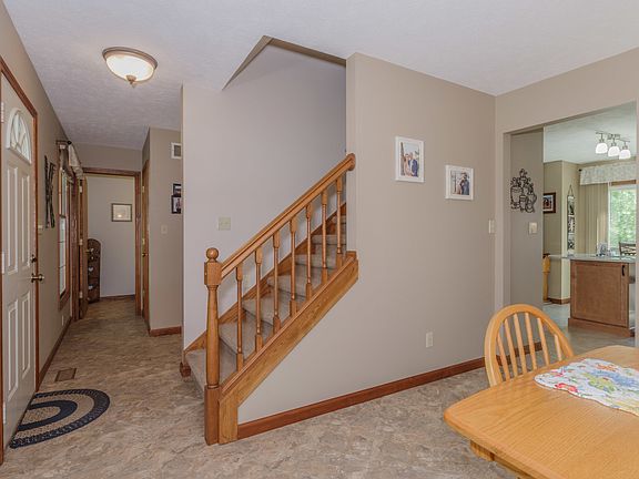 Extensive updates throughout this spotless, meticulously maintained, turn-key home located in sought after Carriage Hills. The 2-car garage boasts a 7x12 bump out for extra storage or workspace. The main floor welcomes you with vinyl tile flooring in the entry and dining room and kitchen. The main floor half bath was remodeled in 2021 with quartz countertop and a hickory vanity w/ soft close. A full kitchen remodel provides quartz countertop, marble backsplash, solid maple cabinets w/ soft close, and stainless steel appliances. The convenient main floor laundry room is ideal and even has extra cabinetry above the washer and dryer. The fireplace was converted to gas and a newer Anderson sliding door leads out to the maintenance free TWO-level deck with fenced yard. Upstairs is the primary suite with remodeled bath featuring cherry vanity w/ soft close, solid-surface counters, and a tiled & glass shower, two additional bedrooms and a hall bath. The basement features vinyl tile floor, the 4th bedroom, 3rd full bath, and an entertaining area equipped with projector and 96" screen. Updated mechanicals include furnace (2007), ac (2019), water heater (2016), radon mitigation fan (2014), and sump pump with battery backup (2016) and new battery (2022). The home has curb appeal with brick and vinyl exterior, newer garage door with windows, maintenance free front porch railing & posts, plus gutter helmets. This home checks all the boxes and is a pleasure to show!