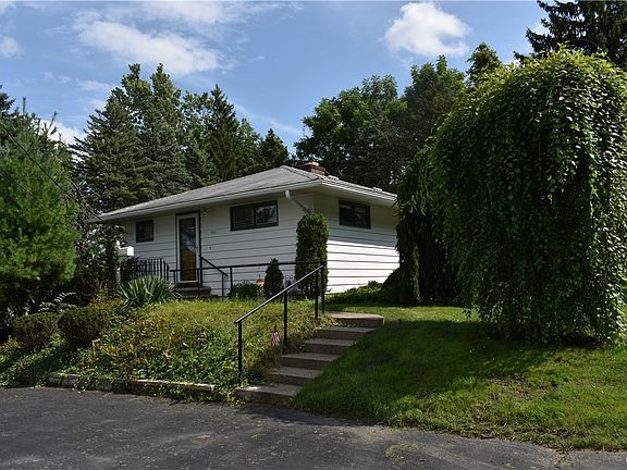 Welcome to this Central NY home sale opportunity offering this ranch style home. You will be greeted by a spacious mudroom entry which conveniently leads into the kitchen. The kitchen offers an Eat-In style space, all appliances, and connects to the dining room space. The home is showcasing two large bay windows which allow for warm natural light to enter and fill the home. You will be excited to see how the hardwood floors carry throughout the home. The front living room is large and a wood burning fireplace completes this space. As you continue your tour you will notice the 3 bedrooms along with the full bathroom. The home is nicely nestled with a mature tree line that surrounds the home so well. An exterior walkout basement is an added treat too. A flat backyard will be great for outdoor recreation. Call today and reserve your scheduled showing appointment!