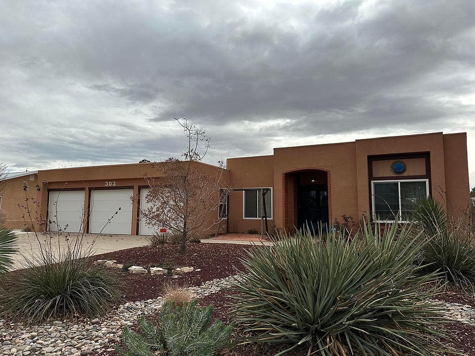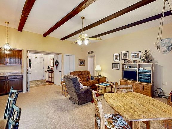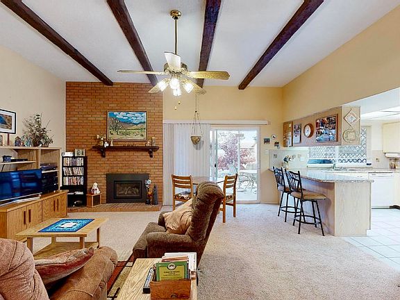 This lovingly cared for, 3 bedroom 2 bath home with workshop is ready for a new family to love. With two living areas, dining room and kitchen with access from either living area, this is a great home for entertaining. There is plumbing still available for a wet bar in the Family room. Large primary bedroom and bath have beautiful titled shower, upgraded counters and fixtures, large closets and sliding glass door to the back yard. 2 more generous size bedrooms and a full hall bath complete the living area of the home. The yard features mature fruit trees, raised garden boxes and southwest landscaping, all on irrigation drip system. 26 X 14 shop has 220 electric and water. The oversize 3 car garage has an opener for each door, room for a freezer, which conveys and extra space.
