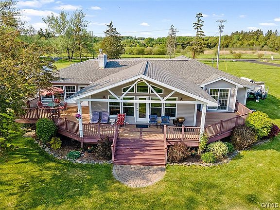 Sprawling and spacious gorgeous 1 acre ranch home on Oneida Lake!! Those Views!! All remodeled & updated (2007)with added square footage & rooms. Brilliant hardwoods, elegant kitchen/Dining area has  luxurious cherry cabinets & black granite,  stainless appliances & gas fireplace for cozy dinners! Vaulted ceilings in the living/family room with a wall of windows w/ stunning lake views! 3 bedrooms including a Primary suite w/ sliders out to a wrap around back deck & primary bath w/ shower & jet tub! Closets Galore! Extra Wide doors $ main bath are handicap accessible! Enclosed & heated sunroom is now office/ den area. Paved driveway with extra parking for RV & electrical.Dry basement with tons of storage! Public water & sewer!! OFFER DEADLINE FOR MONDAY 5/22 AT NOON PLEASE**