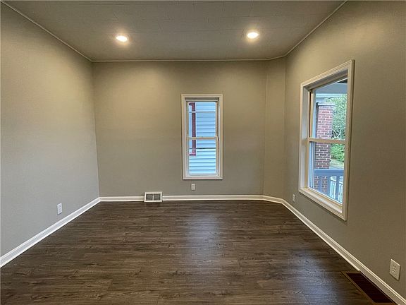 Welcome to this beautifully renovated home where modern comfort meets timeless charm. As you pull into the off-street parking, you're greeted by a welcoming front porch, perfect for morning coffee or evening relaxation. Step inside to discover an open, airy layout with all-new flooring and recessed lighting that brightens every corner. The heart of the home is the stunning, brand-new kitchen, complete with crisp white cabinetry, high-end fixtures, and sleek countertops, making it a chef's dream. The main floor offers ease and convenience with a spacious master bedroom and a laundry room, thoughtfully placed for modern living. The newly remodeled bathroom exudes style and sophistication. Upstairs, two additional bedrooms await, each offering plenty of storage and cozy wall-to-wall carpeting, perfect for unwinding at the end of the day. Outside, the fenced yard provides privacy and space for entertaining, while the shed offers additional storage for all your needs.