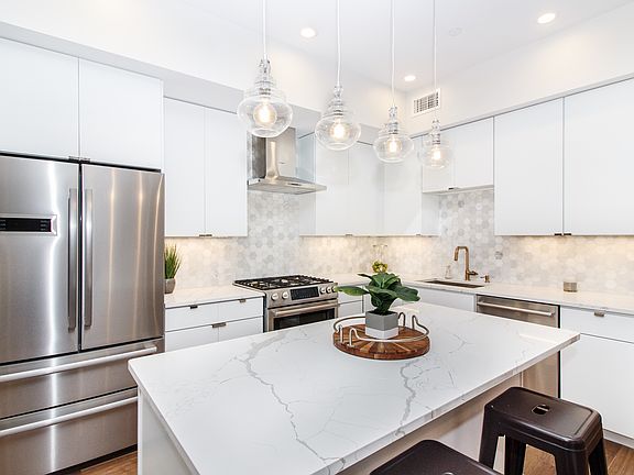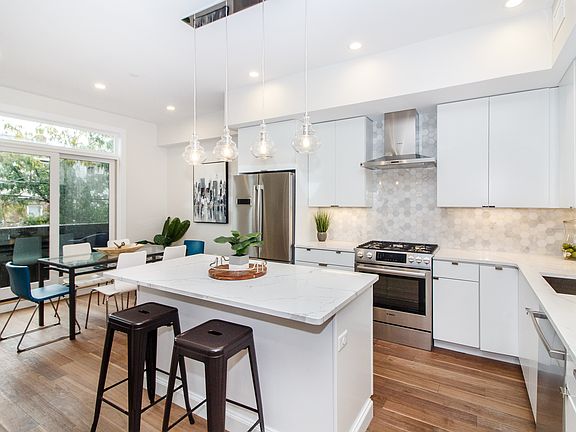 2018 new construction 2 bedroom, 2 bath on a prime Jeffries Point block! Modern design pairs clean lines with walnut & marble finishes creating a unique home just 1.5 blocks from Maverick Square that urbane city dwellers are sure to adore. This spacious floor-through layout includes two generous 18’ bedrooms, walk-in closets w/custom closet systems, home office, open concept living room, dining, kitchen w/large island, Calacatta quartz countertops, 3” marble hexagon backsplash, Brizo & Grohe fixtures, Bosch appliances, slide-in gas range w/vented range hood. LED recessed lighting, 9’10” ceilings & 5" matte walnut flooring run throughout the condo. Master bath boasts a floating double vanity, marble herringbone flooring & glass walk-in shower. Central heat & A/C via NEST, video intercom & keyless entry. Enjoy your own private balcony & a pet-friendly fenced yard for BBQing & gardening. Less than a 5 min stroll to Maverick Station, restaurants, water taxis, Piers Park, groceries & much more!