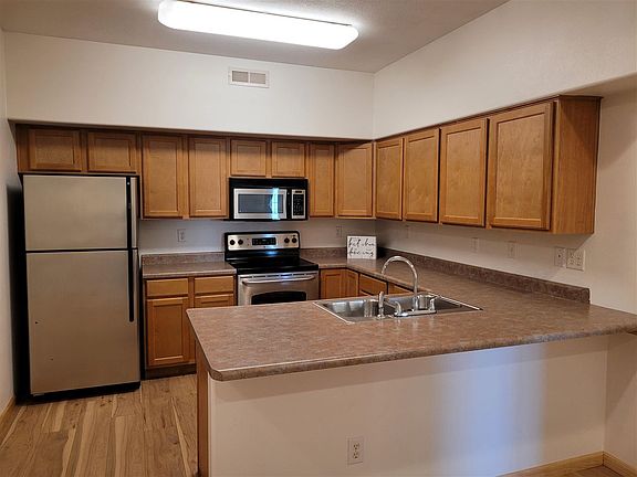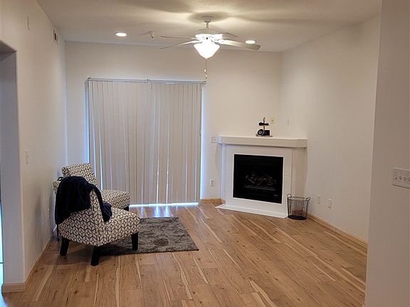 This condo in Stonehedge Condominiums features 2 bedrooms and 1 bath with an open floor plan. This unit has been completely remodeled with NEW flooring, drywall and all new paint throughout in AUGUST of 2022 It is located on the 1st floor with a nice walk out patio. It features a gas fireplace in the living room and breakfast bar in the kitchen. Laundry is located directly off the kitchen. This condo is on the backside of the building so there is lots of privacy.