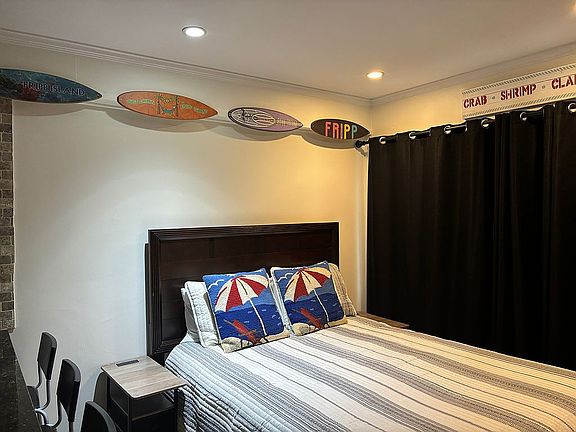 Step into the charm of 502 Sunsuite, a uniquely designed efficiency inspired by "small spaces" from HGTV. Nestled in the heart of Fripp Island, next to the Beach Club, Sandbar, Fitness Center, and Guest Services, with Tennis Courts just across the street. This studio layout is perfect for family vacationers seeking a compact space with all the amenities, including a dishwasher! Featuring a queen bed, a Murphy bunk bed, and a regular bunk bed. This unit comfortably accommodates 6 people, offering a chic and functional retreat, 4-twin beds, 1-Queen bed. Slim Refrigarator with ice maker, electric oven, microwave, dishwasher, flat screen TV, coffee maker, toaster, and dresser (all pictured items). Laundry room on-site along with access to owners ice machine along with beach chair and bike storage. This is the only Sunsuite that sleeps 6 comfortable with a great rental history. HOA fees are $1,242 per quarter, the quarterly fees cover all your utilities (gas, electric, water, sewer, cable, internet, and trash) and building insurance. No steps, first floor beachside unit. This is for sale by owner, Mike McDonnell 732-718-0901.