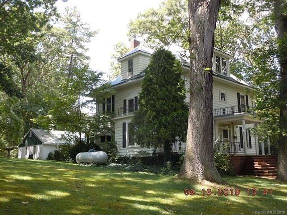 A stately home with historic significance on a level, corner lot just 5 minutes from 1-40, exit 31, an easy commute to Asheville. This home boasts wide hallways, large rooms with tall ceilings, newer windows, newer metal roof and a heat pump system with gas back up for those super cold days. The main level includes a large kitchen with charming butler's pantry, good sized laundry plus open plan living, dining room, den or fifth bedroom. Upstairs offers 4 bedrooms and 2 full baths. The third story has 2 rooms for expansion or storage. The grand sweeping staircase to the front door and half wrap porch is just fabulous. The lot is flat and shaded with easy access, mature landscaping and a 2 car detached garage.It does need cosmetic updates. Take a look today!