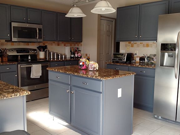 - Interior Features: Ceiling Fans(s), Vaulted Ceiling(s), Walk-In Closet(s), Window Treatments, Solid Wood Cabinets, Kitchen/Family Room Combo, Built in Features, Stone Counters, Thermostat, Pest Guard System