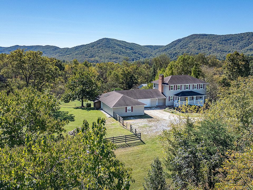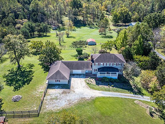 Acreage! Views! Location! This Spacious 4 BR+3.5 BA Botetourt County Home on 9+ Acres is a Perfect Retreat for Hobbyists,Agriculturists, Animal Lovers, Entertaining & for Extended Family! 3 fully Finished levels, All Freshly Painted, Newly Refinished Hardwoods on Entry; Oversized Living & Family Rooms, All New Kitchen 2022, Updated Bathrooms, Lighting & Built-in Storage throughout. Walkout Bsmt w/Kitchenette+Full Bath+Den & Office/5th BR (TV & Ring-cam convey). Awesome Studio/Rec Rm w/Vaulted Ceiling, Skylights, woodstove & portable A/C, Plus 2x Attached Garages. Front Porch, Back Deck, Paver Patio, Fenced Pastures, Run-In & Outbuildings! 2 New Trane Heat Pumps 2021, Replaced Windows/Gutters & Siding2015, 40Yr Roof 2007. SepticPumped 2021