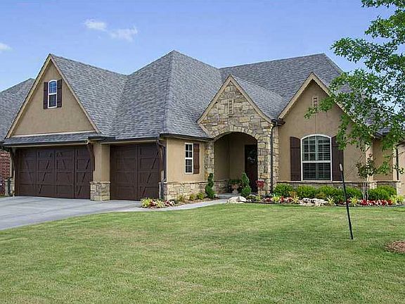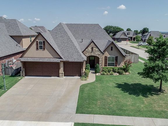 This is a beautifully appointed home on a corner lot with 3 bedrooms down plus office with closet. 4th bedroom upstairs features full closet and built in wet bar w/wine refrigerator + microwave. Hardwood floors, plantation shutters, granite and stainless kitchen, walk in pantry, sprinkler system, HVAC 2 years old, solar radiant insulation in attic, new paint inside/out. Basketball goal stays. Stained concrete drive. Yorktown neighborhood amenities include parks, trails, splash pad and pool. Bixby Schools.