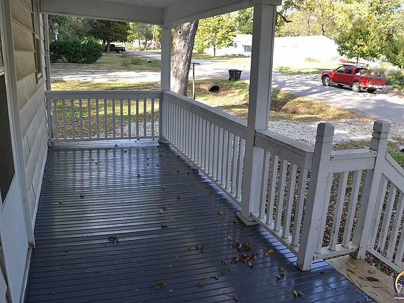 Bungalow with original hardwood flooring and woodwork throughout. 2 Bedroom, 1 Bath with spacious dining area and living room. Beautiful Pine Hardwood floors under carpet in living/dining area. Remodeled Bath. New 2 inch faux wood blinds in every window! Nice size utility/mud room. Recently rebuilt porches. 2 car garage. Full Basement great for shelter from storms and storage! Located on corner lot with mature shade trees. New water and sewer lines from house to city main in June 2016.