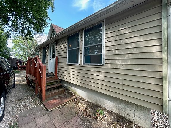 Take a look at this classic farmhouse sitting on a double lot with peaceful country views and plenty of space to explore plus Unit 7 schools! Relax on the enclosed front porch before heading inside to discover gorgeous hardwood floors running through most of the home starting in the spacious living room and continuing into the separate dining room. The large eat-in kitchen boasts great working counter space as well as plenty of beautiful wood cabinets. Just off the dining room, a bonus room provides the perfect spot for an office or play space. The first of two main floor bedrooms offers a private full bath and built-in storage. A second guest bedroom and full bath just off the living room complete the main level. Up the open staircase you'll find two additional bedrooms plus fantastic bonus storage solutions and a half bath. Need more? Check out the full, unfinished basement for even more space. You'll instantly fall in love with the backyard, complete with garden area, storage shed, many fruit trees and incredible views! Recent improvements include HVAC, water heater, and roof. Sold as is. Schedule your showing today!