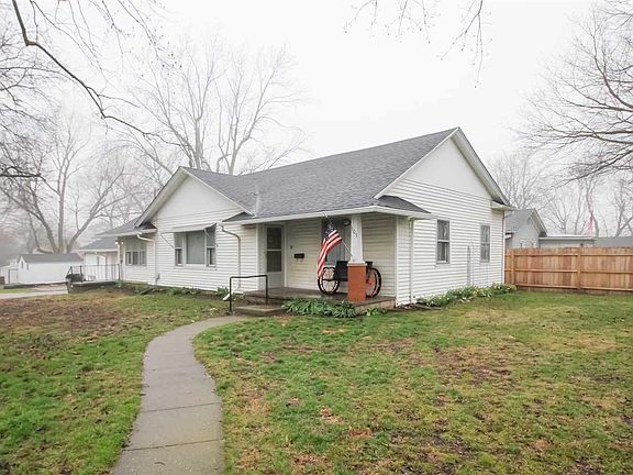 Move-in ready two bedroom small town corner lot vinyl sided ranch style home with an attached three car garage! Inside, you will find a large living room with wood flooring, center woodburning fireplace, ample floor space, and superb natural lighting, comfortable formal dining room with plenty of room to accommodate a large table and chairs, wonderfully updated (newer cabinetry as well as countertops) eat-in kitchen which also houses the laundry facilities -- all appliances (range/oven, refrigerator, washer, and dryer - washer and dryer to be switched out prior to settlement) to remain upon settlement - can easily accommodate a large table and chairs, two nice sized bedrooms -- both with wood flooring, totally updated full hall bath, and a great enclosed front porch with wood lined ceilings. Property also features a one car attached garage that features direct access to an additional two car attached garage with alley access. A storage shed, covered front porch, maintenance free vinyl sided exterior, partial basement, and ample recent updates including an updated electrical box, newer furnace and central air conditioning unit, water heater, architectural roof (2017) - the list goes on! Privacy fencing added to back of property by current owner in 2017. Situated on an extra large 135X84 tree shaded corner lot, you will find this nearly 1,400 square foot rambling ranch home -- more than meets the eye! In the Mt. Pulaski real estate market? Be sure to schedule an appointment to view 303 W. Morgan Street!